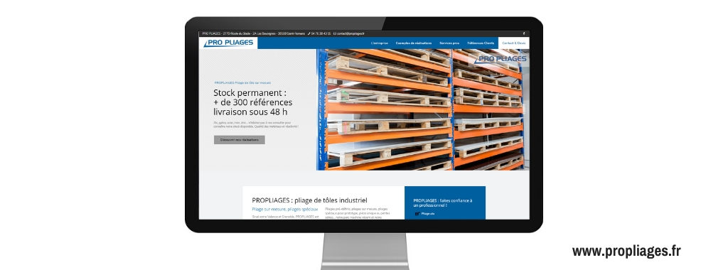 Contexte :Pro Pliages est une entreprise de pliage de tôles industriel, pour intervenir sur les opérations de pliage d’’acier, inox, aluminium, cuivre, zinc, galva….Elle est localisée entre Valence et Grenoble. La société a souhaité donner de la visibilité à son entreprise sur internet